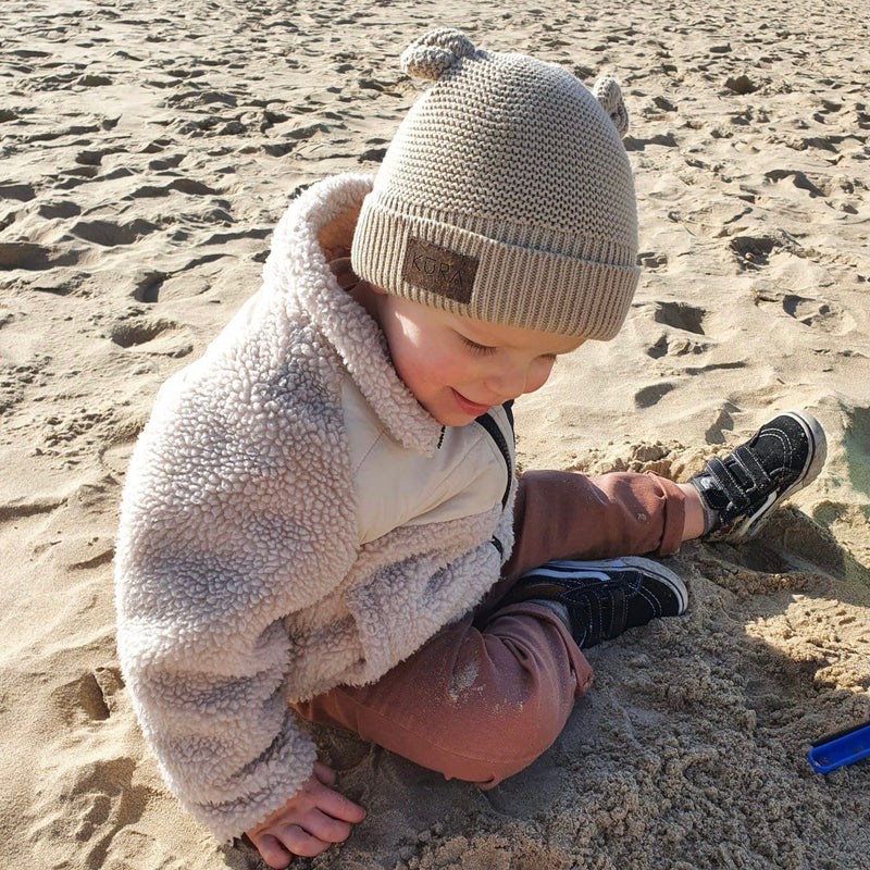 Organic Beanie Hat In Stone Kura Organics
