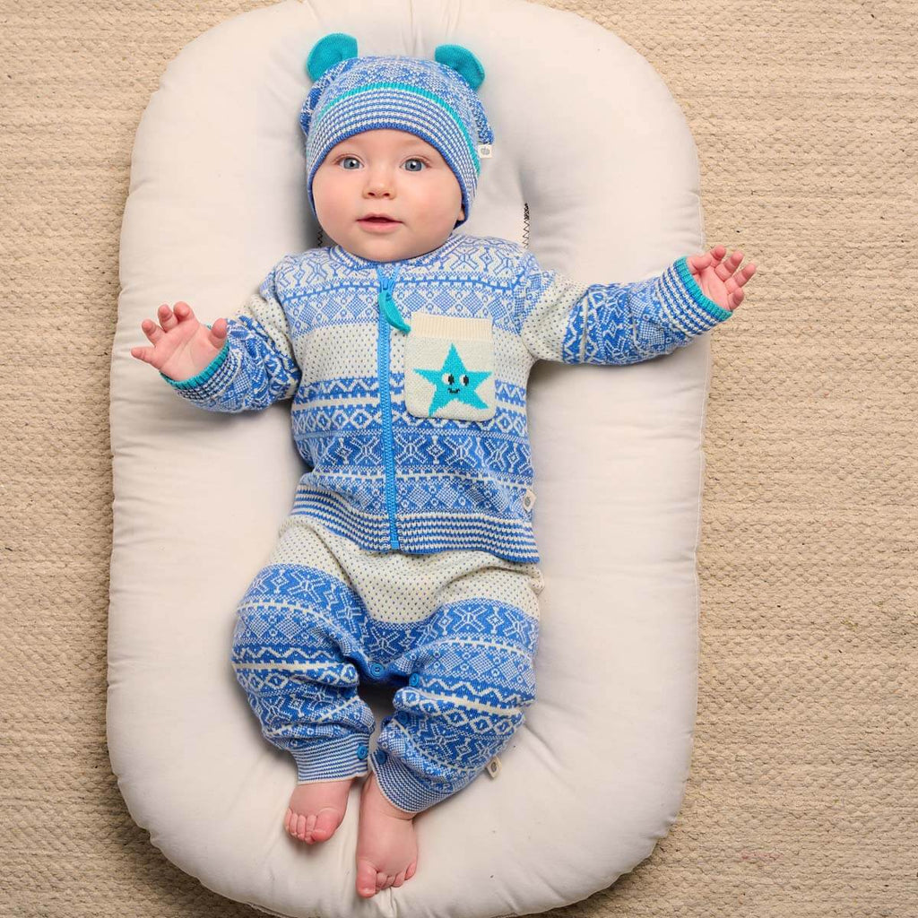 Blue Fairisle Knitted Baby Kids Hat Gots Organic Cotton Cashmere The Bonniemob